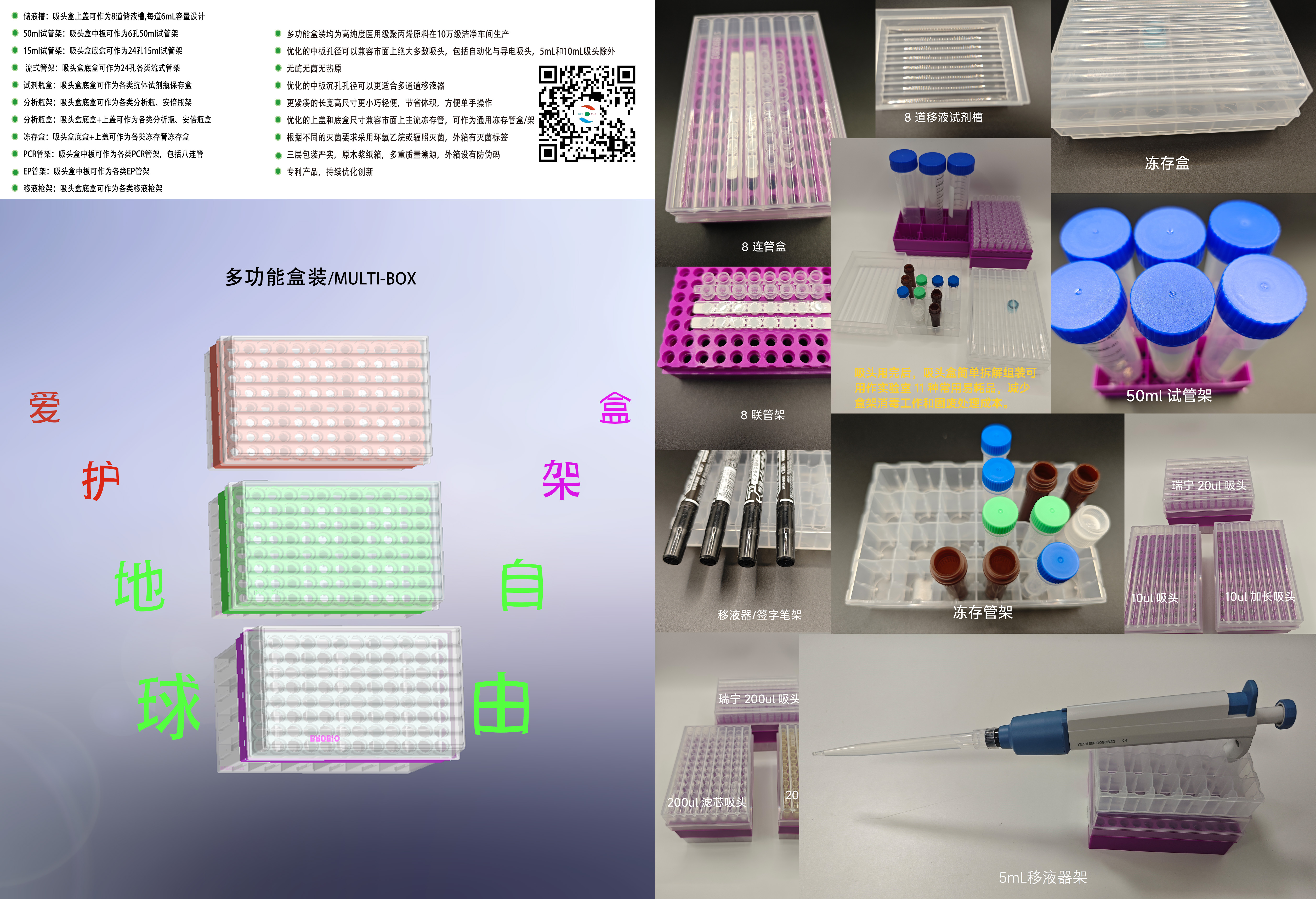 为了解决实验室常用试管架子、移液槽、冻存盒等易耗品的使用便捷性和吸头盒等固废处理成本高等难题,苏州布鲁BROFIX推出创新的多功能盒装吸头系列产品,覆盖各类移液设备配套的不同量程规格的常规吸头、滤芯吸头、低吸附吸头等产品。我们致力于生产吸头、吸头盒、包材均为高纯度医用级PP原料生产的高品质盒装吸头,且在吸头、吸头盒上均有可供溯源的独特模具号标识,保证品质,避免移液实验污染风险。BROFIX苏州布鲁多功能盒装吸头用完后,吸头盒简单拆解组装可用作实验室试剂槽、各类规格试管架、各类保存盒、各类移液枪架等 11 种易耗品,优化的高度和沉孔设计可以兼容市面上90%的移液吸头和冻存管,横杆/槽的设计和洁净车间纯料生产保证吸头盒重复灭菌不易变形, 减少实验室常规消毒工作和固废处理成本,在给实验人员提供高品质产品和使用便利的同时,为低碳环保和地球可持续发展贡献微薄之力!