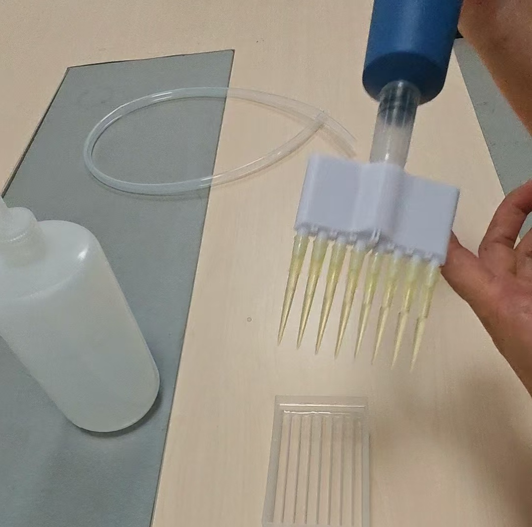 3、极简-免穿刺防蒸发盖垫及配套深孔板,一种全新的防蒸发方法,可以实现对试剂和样品冷凝气密封、有限液封和持续液封三类6种密封方式解决各种因挥发造成的检测结果误差,恒定蒸气压实现稳定封密;4、文水-分离式移液吸头装盒器,PETG纯料主体框架皮实耐用,可拆卸碳纤维插销不变形不卡吸头,独特定位板解决装盒难对准的问题,对称分离式亚克力延长板可根据实际需求定制长度,兼容8道/12道排枪;5、量准-称量镊子,加厚加宽,结实耐用不变形,人体学设计方便省力,可相对定量夹取颗粒、粉末、试剂、圆珠、圆柱等物品;6、嗨布-多功能实验工具板,集成移液器维修工具、高/低盖八连管开盖器、离心管开盖器、封板膜刮刃、水平仪、多凸起扳手、切割刀、手机/平板支架、内六角扳手套筒、温度计等常用工具功能;7、分流-分液器/排枪转换器,基于湍流结构原理的多道连通器的分流下,对流体如试剂和气流进行精准稳定的分配,兼容5/10mL移液器、洗耳球、常规硅胶管、1mL移液吸头、200uL移液吸头;8、纳纯-微生物/外泌体捕获磁珠,广谱微生物捕获磁珠,革新实验流程;9、贴标-全规格样品管机器人,伺服控制,AI视觉,无人值守,简洁高效;10、开放-无O圈通用型移液工作站,无需O圈免维护,耗材开放,可拆移液针DIY,无损取放,384移液功能,人体学设计;11、超省-袋叠装移液吸头,在保证吸头品质的情况下接近散袋装的成本比散袋装更省事;12、不粘-涂层低吸附处理定制服务,可以低成本高效率大批量的使耗材容纳腔表面具有超疏水/亲水性;13、微培-低成本类器官高通量TC处理培养皿,通量灵活,边缘光滑,可定制; 14、幻影-孔板消泡器,基于食品包装盒和注射器制作而成,成本低廉可自行制作,三秒钟即可消除96孔板/培养皿/培养瓶气泡,轻松上机检测;
